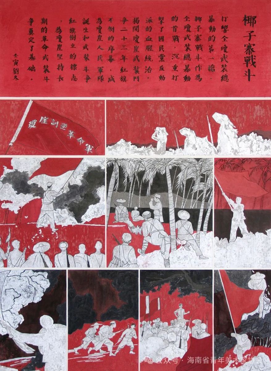 刘冬《琼崖丰碑-椰子寨战斗》绢本设色190X140cm