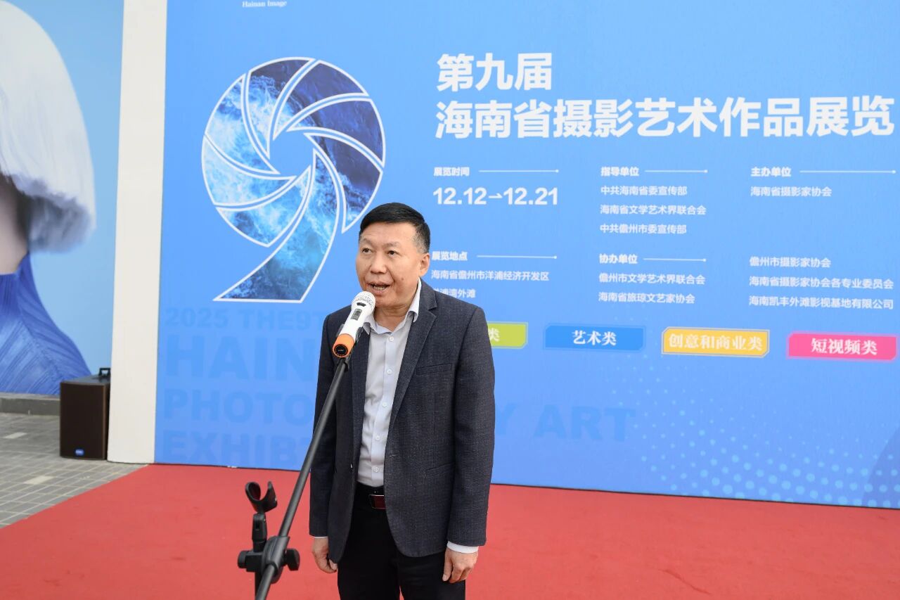 12月12日上午,海南省第九届摄影艺术展(以下简称摄影艺术展)在海南凯丰外滩影视基地开幕。儋州市委常委、宣传部部长、洋浦经济开发区工委委员陶涛,海南省委宣传部文艺处处长陈曼燕,海南省文联秘书长贾明慧,儋州市文联党组书记、主席、二级巡视员陈良荣及省摄协主席团成员、各专委会主任,各市县摄协主席、秘书长及特邀嘉宾出席开幕式。海南省委宣传部二级巡视员林尤铮宣布开幕式启动。