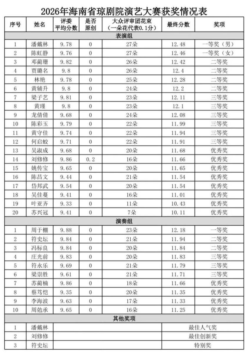 青春 “戏” 聚海口 2026年海南省琼剧演艺大赛决赛收官