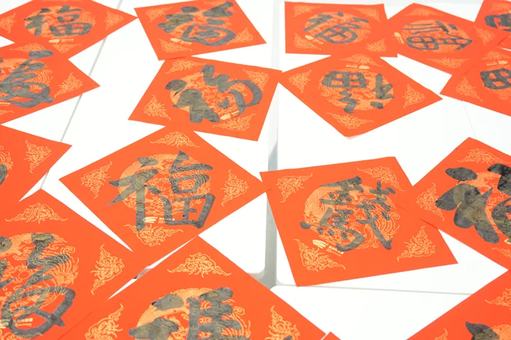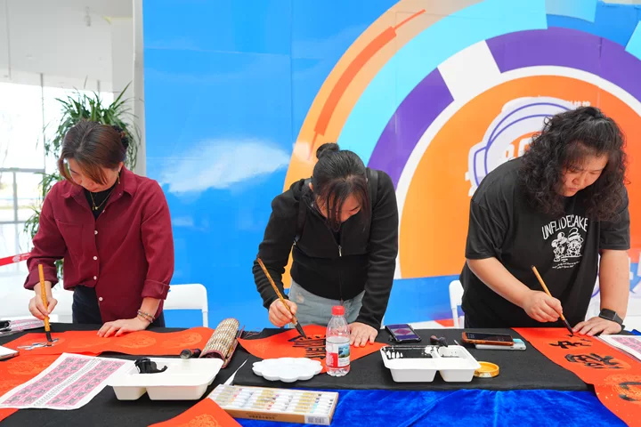 除了春联,现场还书写了许多形态各异的“福”字。书画家们将马年元素巧妙融入——有的在“福”字旁添上一匹俏皮可爱的小马,奔腾腾跃,活灵活现;有的将“福”字笔划稍作变化,勾勒出马首的轮廓;更有不少“福”字直接把“马”写进了笔划里,福中有马,马中有福,寓意“马上有福”,吉祥满满。