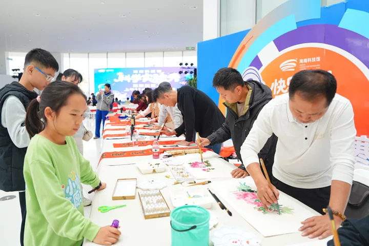 在海南科技馆寻年味,看书画家现场挥毫