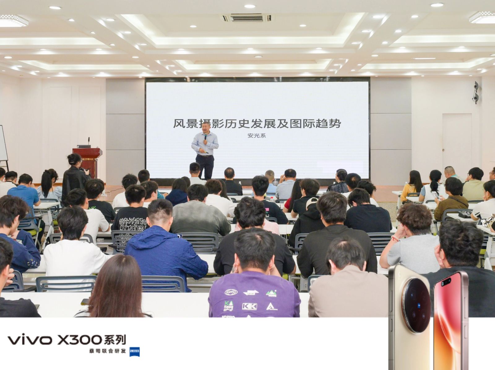 海南省文联副主席、海南省摄影家协会主席罗韬,海口经济学院中广天择传媒学院副院长孙立国、学院教授蔡勇,海南省摄影家协会副主席李小岗、秘书长尹辉以及省摄协各专委会成员,媒体记者,院校的师生近百人参加了讲座。