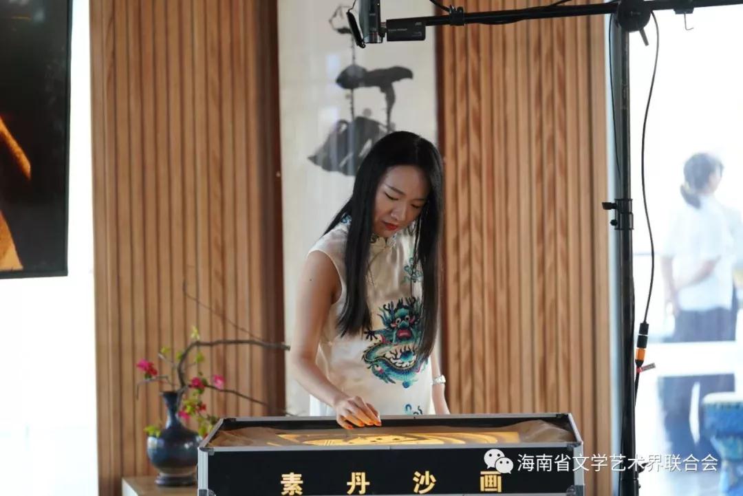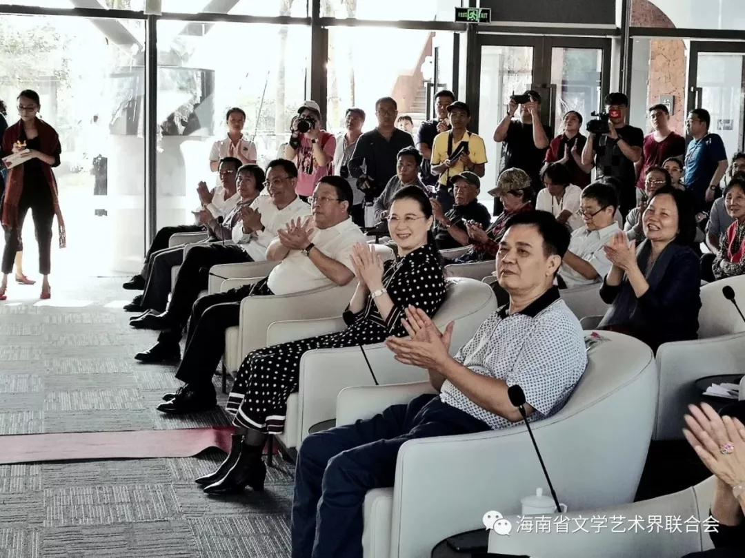 在海口市民游客中心多功能厅,艺术家们表演的配乐诗朗诵以及黎陶、黎锦、剪纸、书法、版画、沙画、音乐、茶品、香道、古琴等展演与互动体验,吸引观众的热情参与,精彩生动地演绎了“看见艺术的力量”的内涵和意义。多位艺术名家分别就雕塑、绘画、民间艺术、书法以及东方生活美学、文学艺术等方面进行主题发言,分享了对生活与艺术的感悟。现场气氛融洽,互动交流坦诚轻松,给听众带来诸多启发和美好感受。