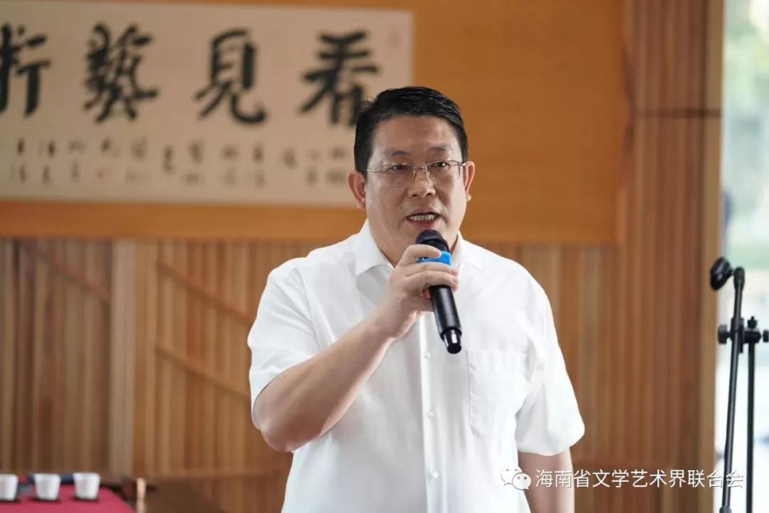 孙苏代表海南省文联致辞,向参展艺术家致以节日的问候和美好的祝福。孙苏说,为深入学习贯彻习近平总书记给内蒙古自治区苏尼特右旗乌兰牧骑队员回信的重要指示精神,落实《中共中央宣传部等关于2019元旦春节期间广泛开展“我们的中国梦”——文化进万家活动的通知》要求,我省宣传文化系统各部门各单位,包括省文联及所属各文艺家协会,纷纷开展形式多样、丰富多彩的活动,进一步丰富全省人民群众的节日文化生活,营造欢乐、喜气、祥和的节日氛围。省文联所属的省民间文艺家协会、省旅琼文艺家协会主动作为,奋勇担当,联合海口市会展局、海口市美术家协会等文艺组织,共同举办了“我们的节日——首届海南岛国际艺术生活展”,多姿多彩地展示海南及旅居海南的艺术名家的书画力作和海南民间非遗等艺术精品,开创了一种全新的艺术大融合的有益尝试。展览自年初四开幕以来,每天都有市民、游客、专家、领导络绎不绝地前来观展,达到了让优秀传统文化和高雅艺术融入了海口的春节文化生活的目的,取得了较大的社会反响,为“我们的中国梦”——文化进万家活动增光添彩。展览期间,又精心策划举行迎春人文艺术沙龙,让艺术家们和社会各界文化人士一起分享展览成功的喜悦,畅谈优秀传统文化和高雅艺术,交流思想,沟通感情,增进友谊。既是共享艺术,也是过一个艺术的节日,这正是我们各文艺家协会应该努力做的事情,让我们广大的艺术家有个艺术大家庭的幸福感、温馨感。孙苏希望“我们的节日——海南岛国际艺术生活展”越办越好,在更大程度、更高水准、更具国际性等方面展示出海南岛的艺术风采,使得这个展览活动名副其实地成为国际化程度较高的海南节日文艺活动品牌。