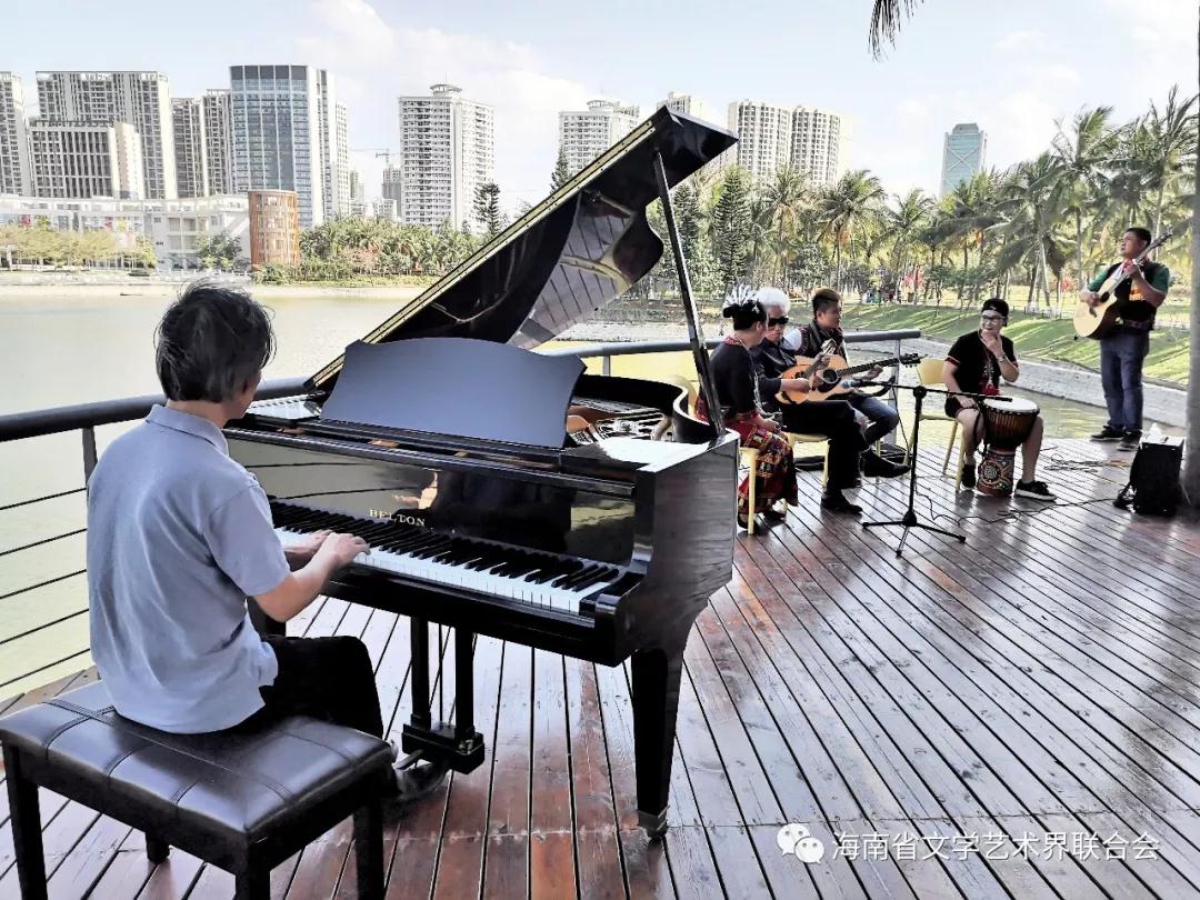 作为“首届海南岛国际艺术生活展”的组成部分,本次沙龙的户外音乐展演是音乐融入展览的有益尝试。由昌江县文联组织的“昌江木棉红”黎族歌手组合带来了他们的黎族欧欧调,让人陶醉在黎族民间音乐带来的美感中。此外,艺术家们还进行了中外经典名曲展演——曼陀铃演奏外国经典名曲、手风琴《山楂树》、萨克斯《秋叶》等经典曲目、蓝调爵士+钢琴演奏等等。本土音乐与外国经典音乐的结合与“国际艺术生活展览”的内涵相契合,彰显了艺术的魅力与感动人心的力量。