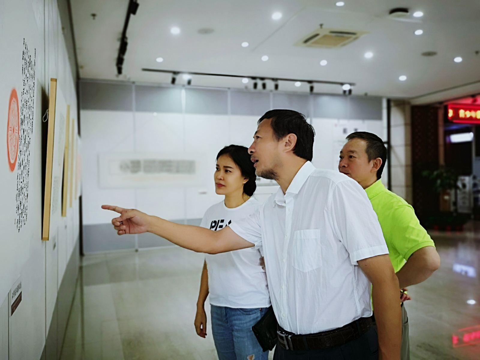 王艳梅在省图书馆参观上期“旅琼文艺家大讲坛”嘉宾刘炜东的“汉画像——一个时代的伟大艺术精神”拓片艺术展