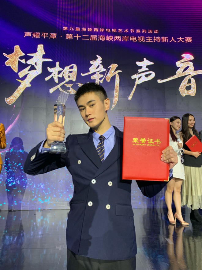 近日,由海南省影视家协会组织选派的窦华睿、程祺和林向杰三名优秀选手参加了在福建平潭举办的“声耀平潭•第十二届海峡两岸电视主持新人大赛”,经过复赛与总决赛的激烈角逐,我省的窦华睿获得“铜奖”,程祺和林向杰获得“优秀奖”,带队老师崔洋获得“优秀指导教师”称号。