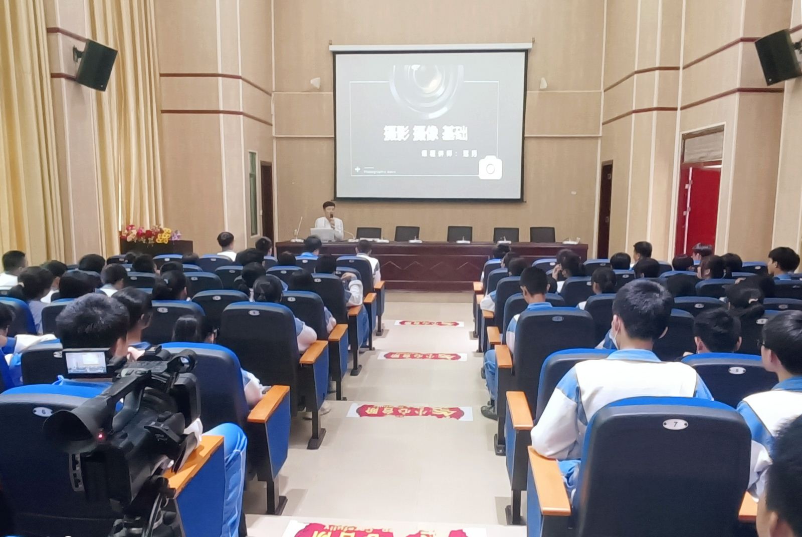 此次冠男老师上课的主题是“摄影摄像基础”,他主要为同学们教授了电影诞生、电视制作、摄像知识、景别概论等摄影、摄像的相关专业基础知识。考虑到此次上课的多为学校高一新生,对于专业性的知识较难理解,冠男老师还结合电影《活着》,对影片镜头进行分析,让学生们更容易吸收和掌握。
