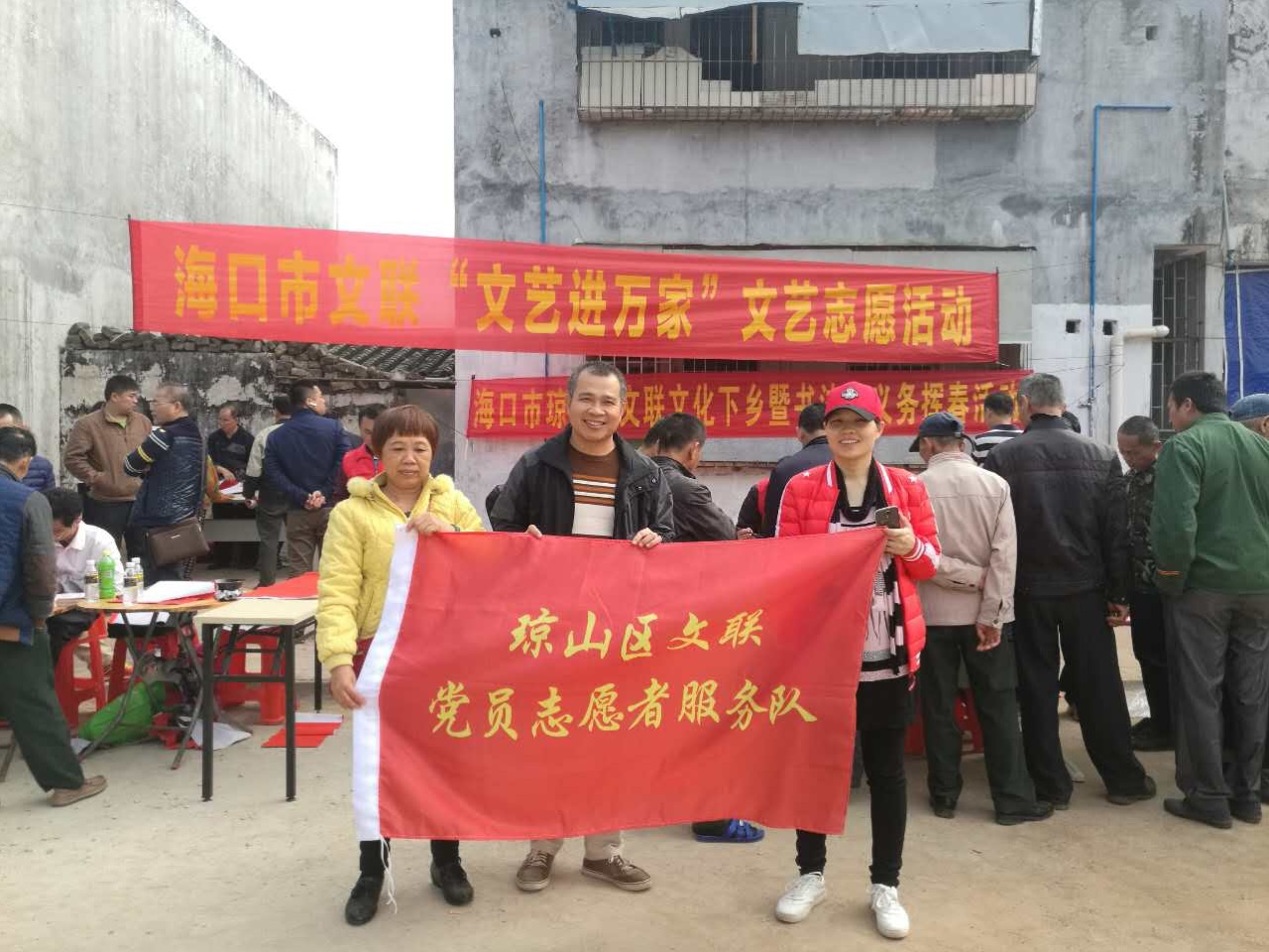 根据市、区宣传部的统一部署,结合"深入生活、扎根人们"主题实践活动,1月23日上午,琼山区文联组织区书法家协会的党员志愿者组成党员志愿服务队,到红旗镇开展文化下乡暨书法家义务挥春活动。