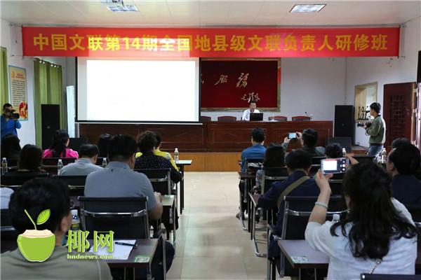 当天上午,在那大镇石屋村中国村官精神馆会议室,海南省文联副主席、儋州市文联主席王威为学员们作题为《创新形式 搭建舞台 擦亮“四乡”文化招牌》的案例教学,介绍了近年来儋州市文联紧扣深入挖掘地方特色文化资源,大力传承发展乡土文化,围绕儋州市委市政府中心工作,擦亮“四乡”文化招牌等内容,系统阐述了儋州市文联近年来开展工作的具体做法和有益探索,并分享工作感受。学员们在听取案例教学后,对儋州市文联工作的新思路、新举措、新成效表示赞赏。近年来,儋州市文联围绕“全国诗词之乡”、“中国楹联之乡”、“中国书法之乡”和“中国民间文化艺术之乡”等四块“国字号”文化招牌,大力弘扬中华传统优秀文化,推陈出新,擦亮特色文化品牌,文艺工作和文联工作都取得了新的突破和新的成绩。