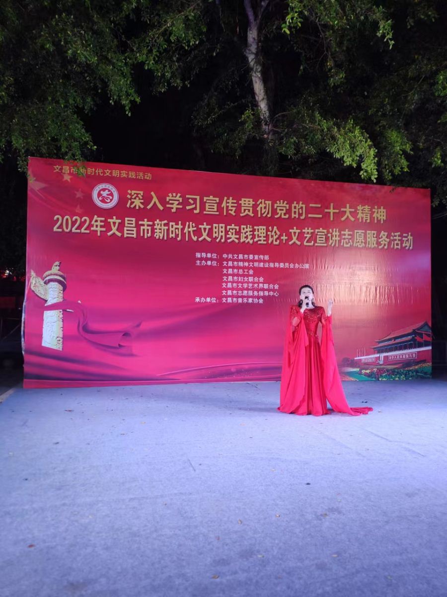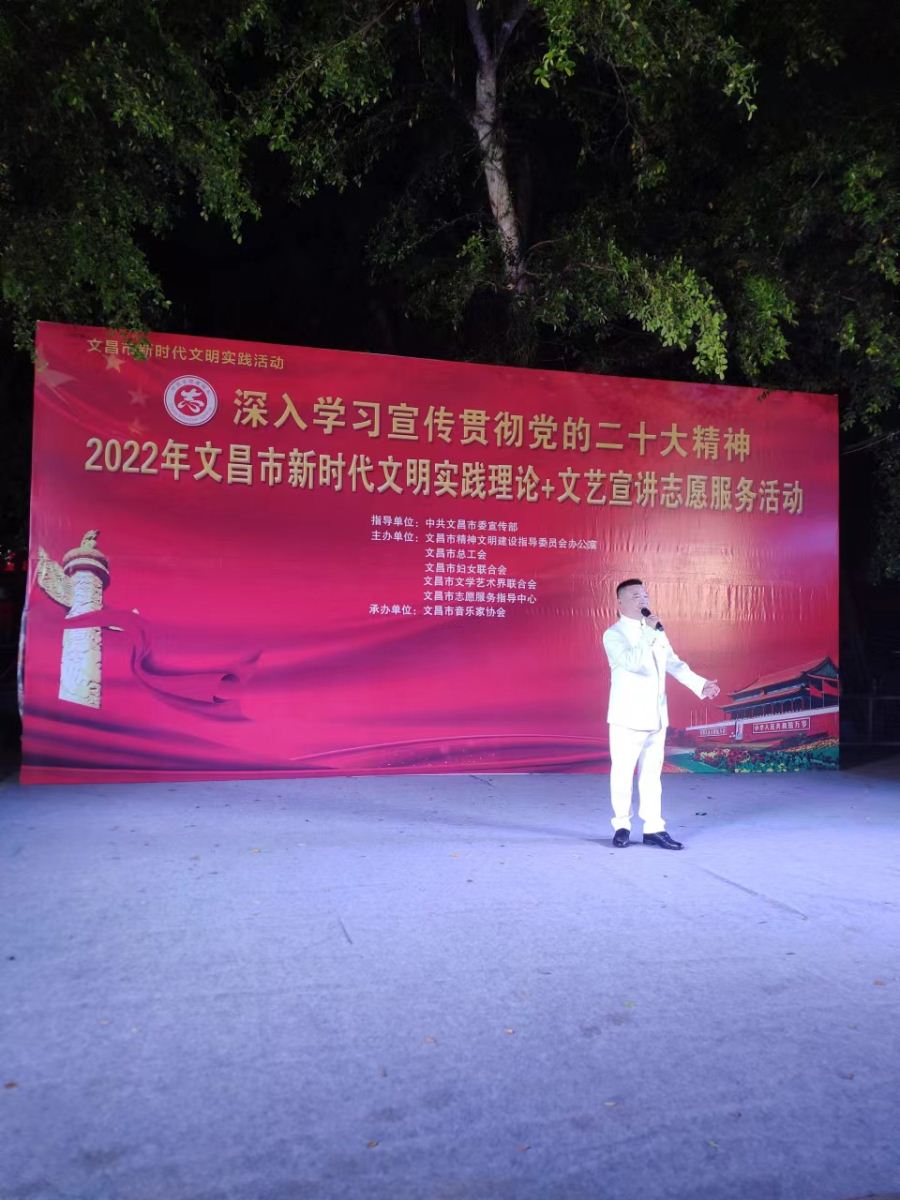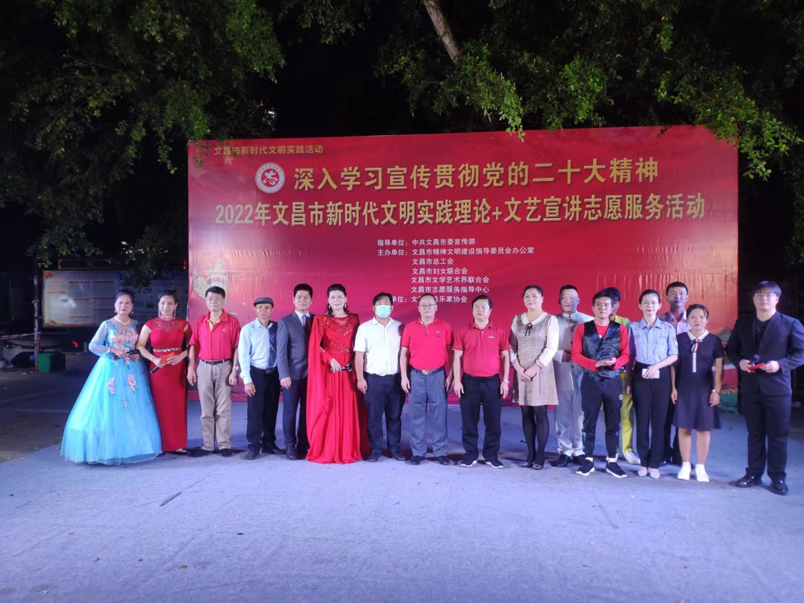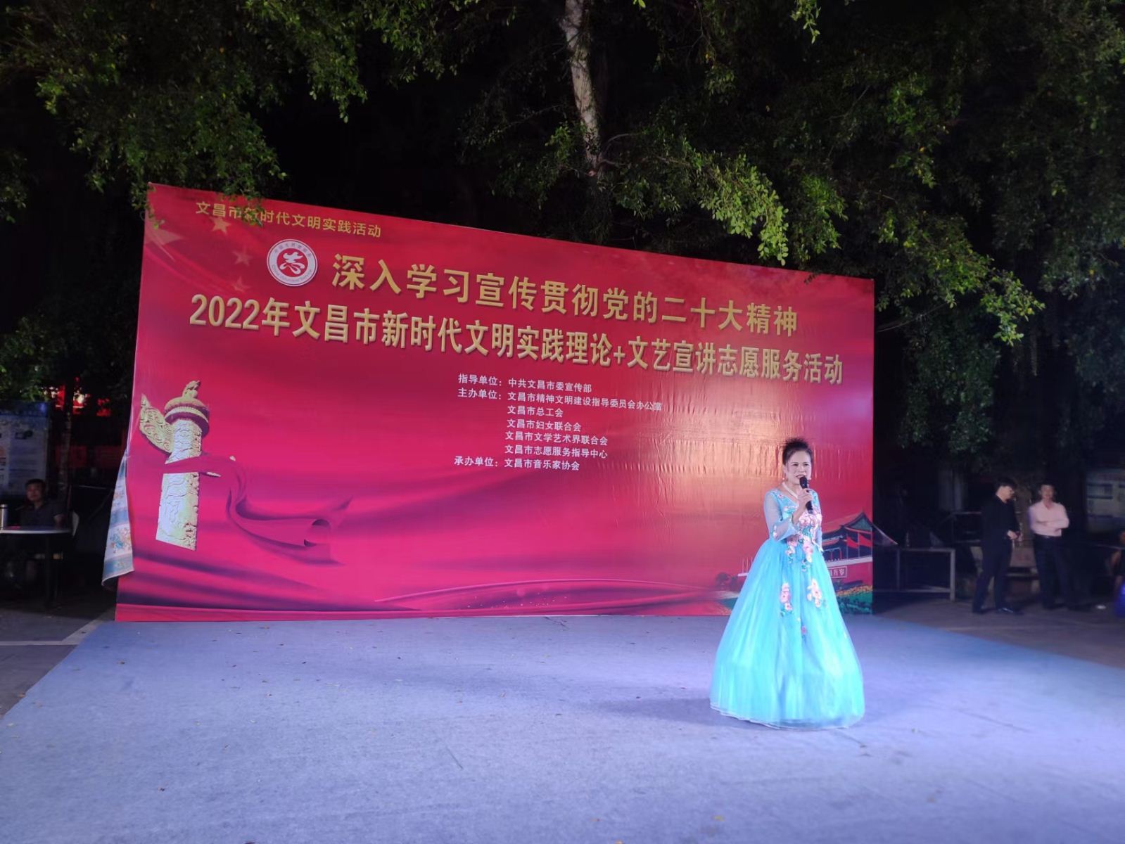 为进一步深入学习贯彻落实习近平新时代中国特色社会主义思想,发挥文艺的独特优势,激发和凝聚广大干部职工群众的干事创业热情,以更加饱满的豪情斗志投入到加快文昌国际航天城建设中来,在中共文昌市委宣传部指导下,文昌市总工会、文昌市妇联、文昌市文联决定,组织文艺宣讲队伍,围绕党的二十大精神学习宣传、乡村振兴、重点项目建设、创建全国文明城市、“扫黄打非”、关爱未成年人等全市重点工作,于2022年11月16日晚上8:00在文昌市东郊镇椰树村委会开展2022年文昌市新时代文明实践系列活动。