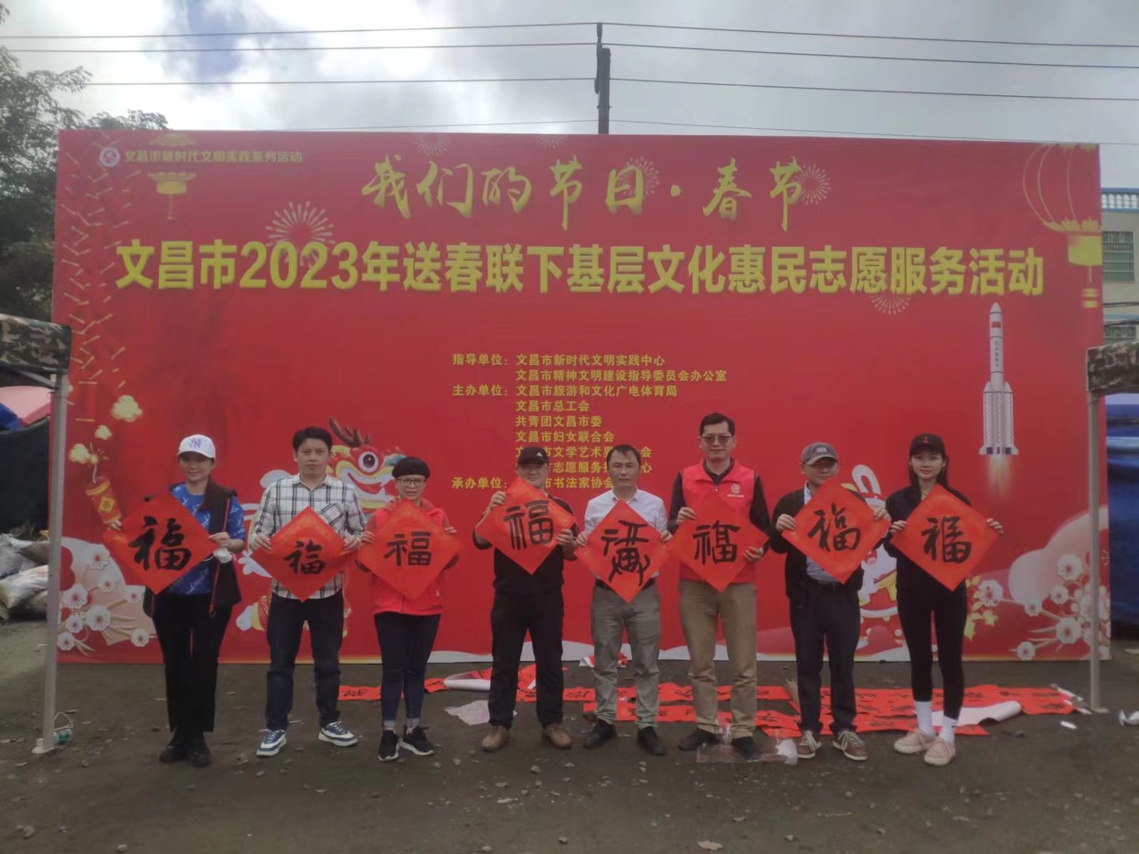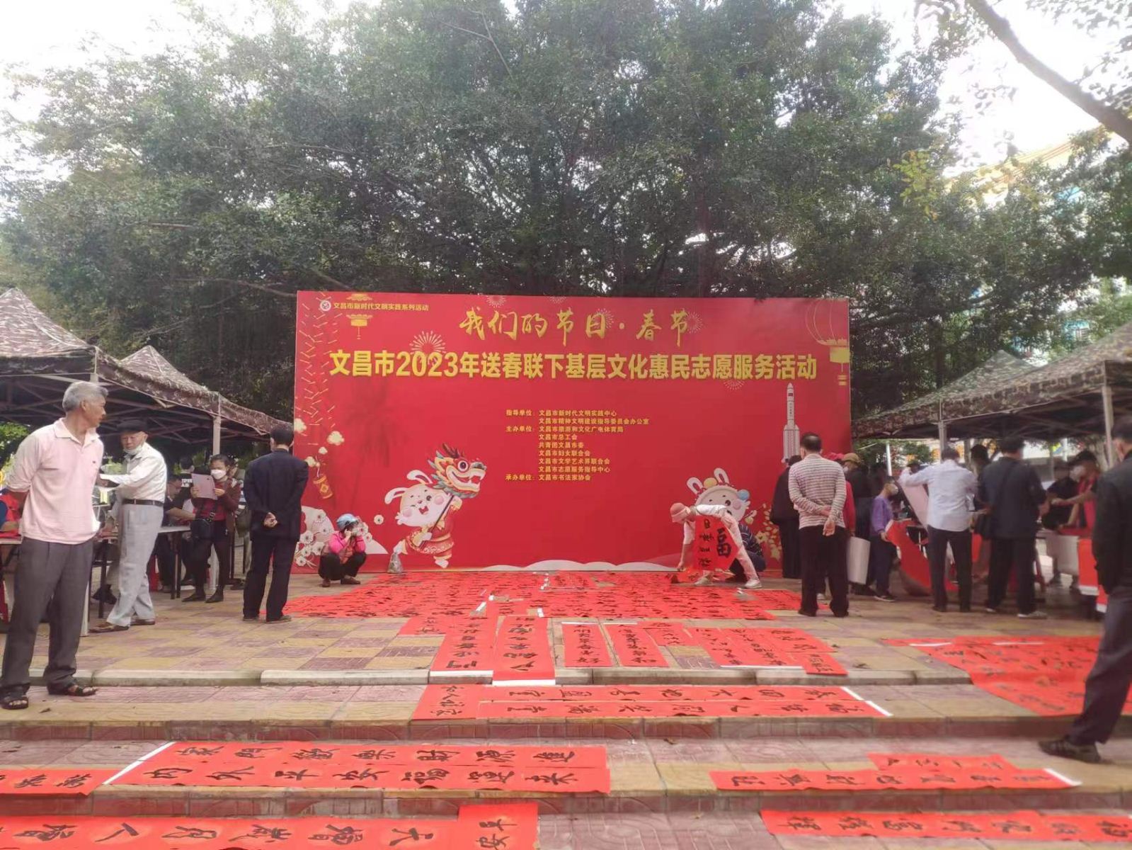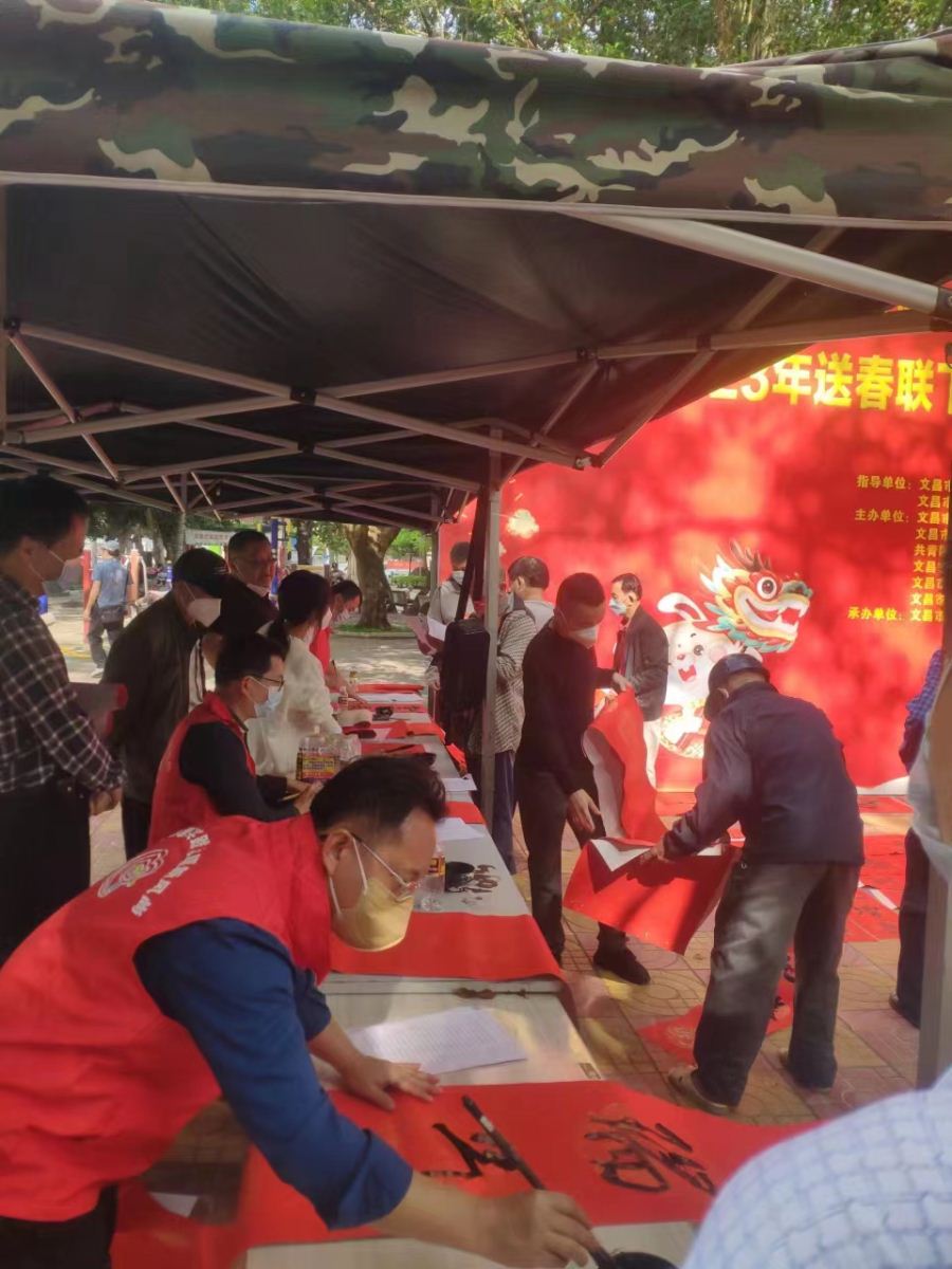 为持续做好文昌市创建全国文明城市工作,营造欢乐祥和的春节氛围,推动党的二十大精神深入人心、落地生根,引导群众增强感党恩、听党话、跟党走的信心和决心。文昌市精神文明建设指导委员会决定在2023年春节前夕举办“我们的节日‧春节”——文昌市2023年送春联下基层文化惠民志愿服务活动。具体如下: