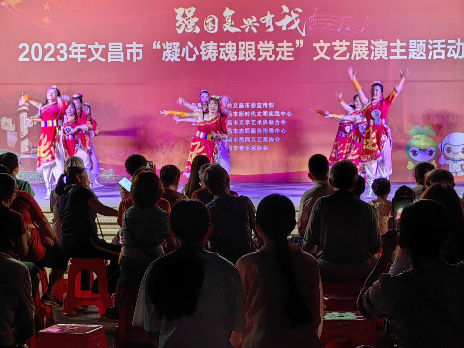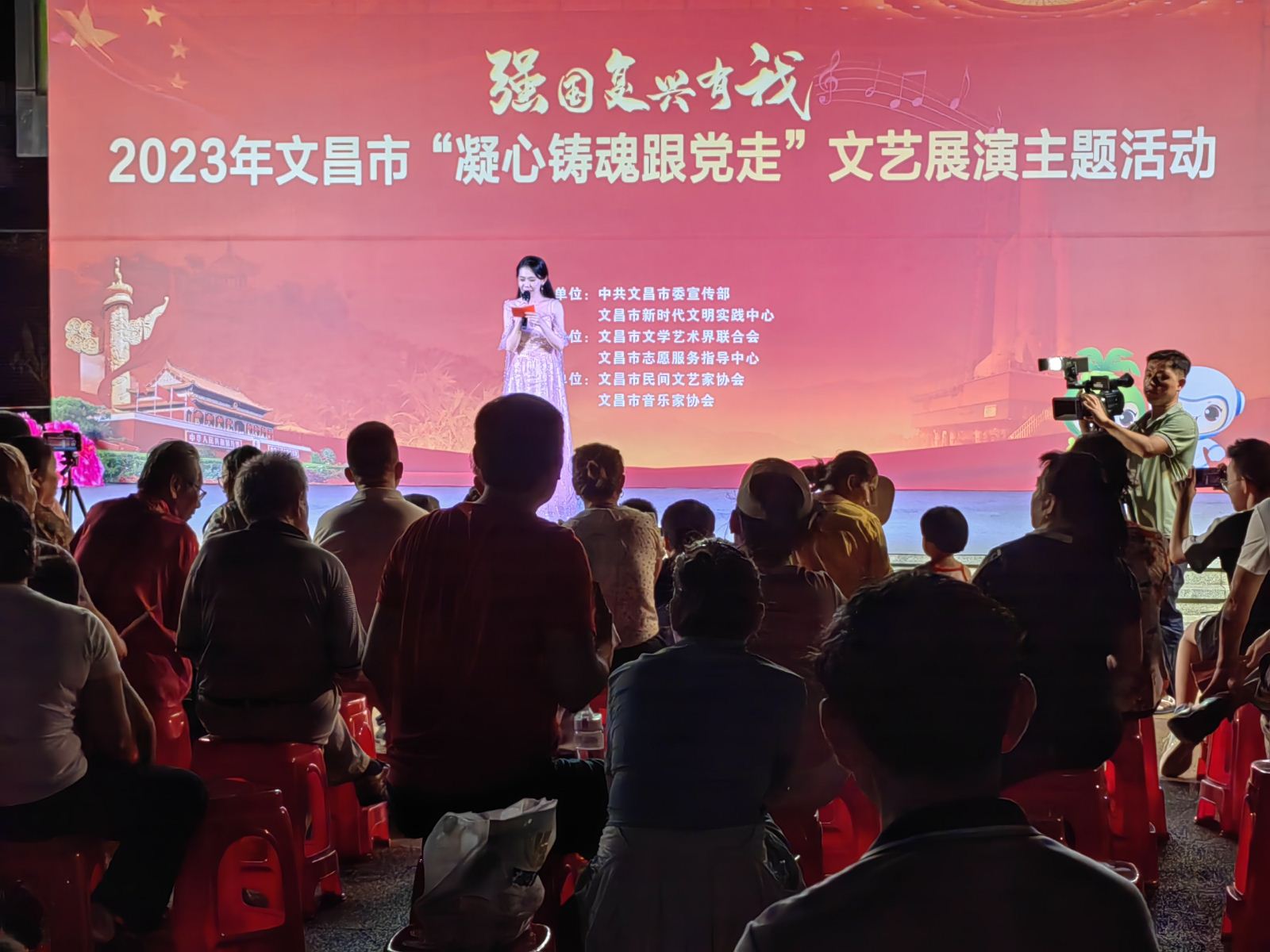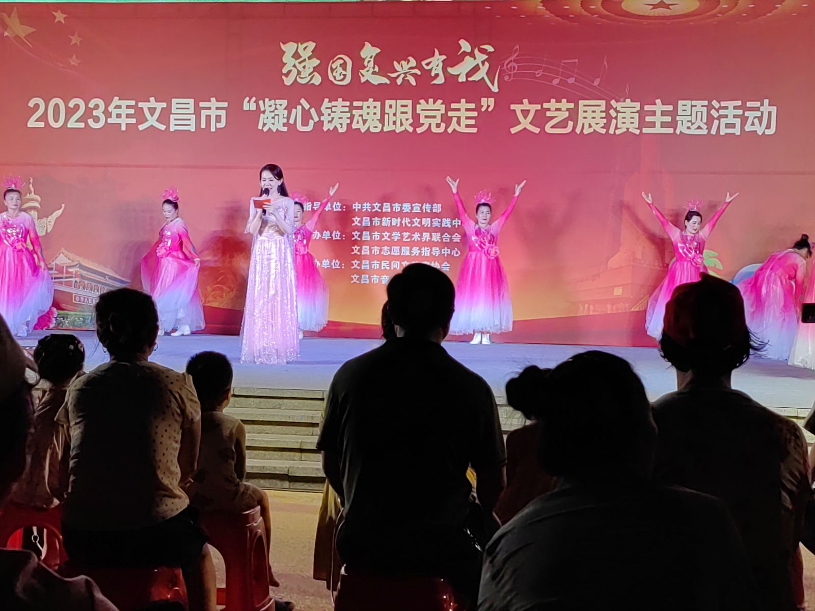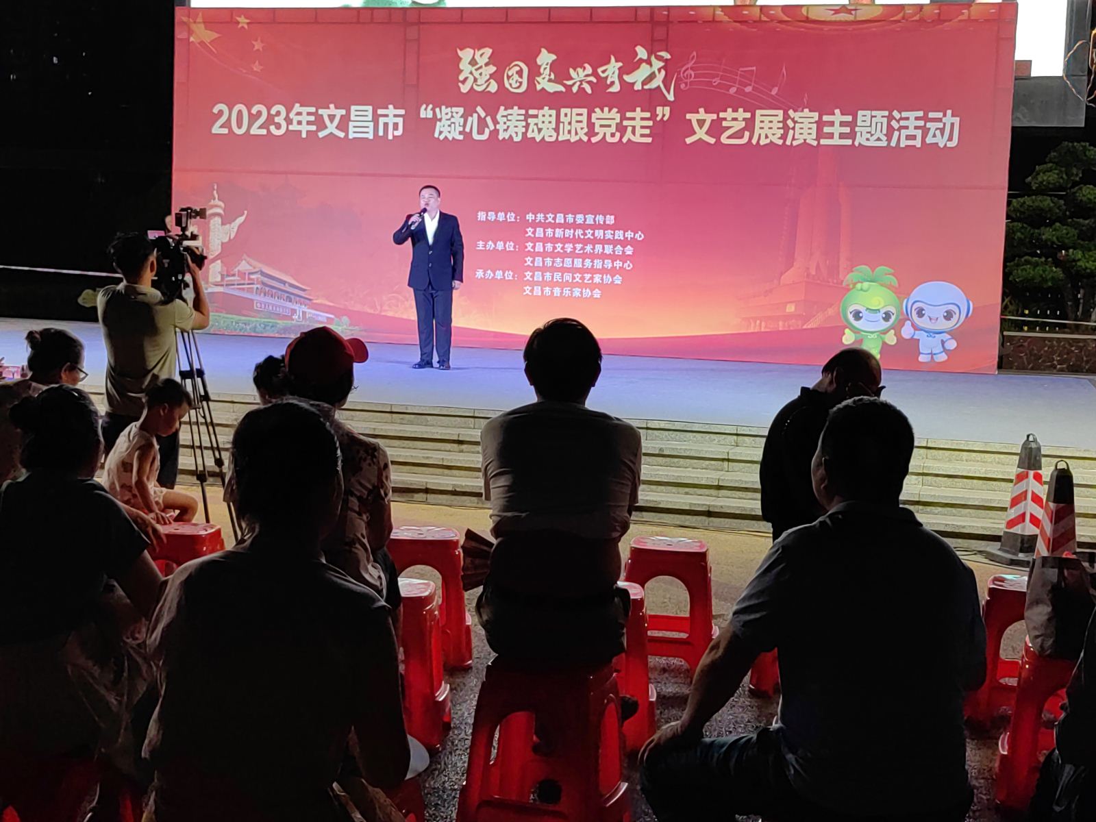 为进一步深入贯彻落实市委市政府关于积极推进文昌创建全国文明城市工作部署要求,展现新时代“军爱民、民拥军,军民鱼水一家亲”的良好社会风尚,丰富驻文昌部队官兵精神文化生活,发挥红色文艺培根铸魂独特作用,在市委宣传部指导下,市文联于2023年7月28日晚20:00在文昌市文城镇市民健身活动中心举办2023年文昌市“凝心铸魂跟党走”文艺展演主题活动。
