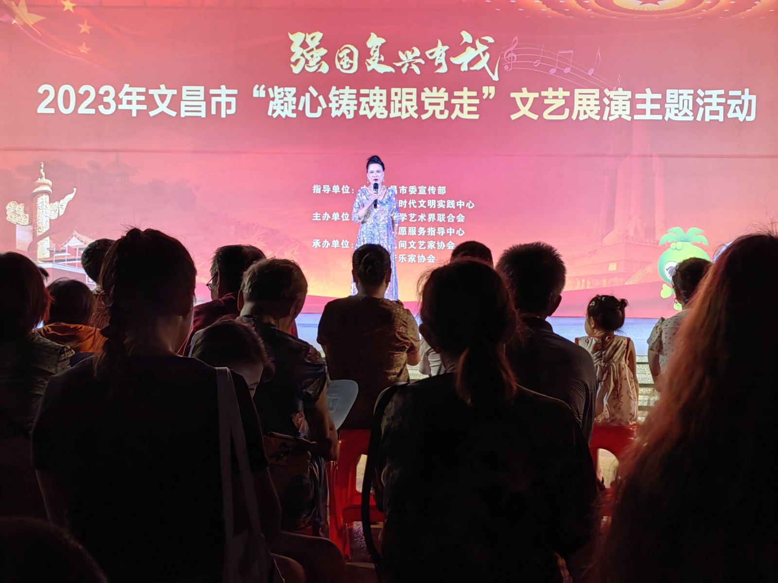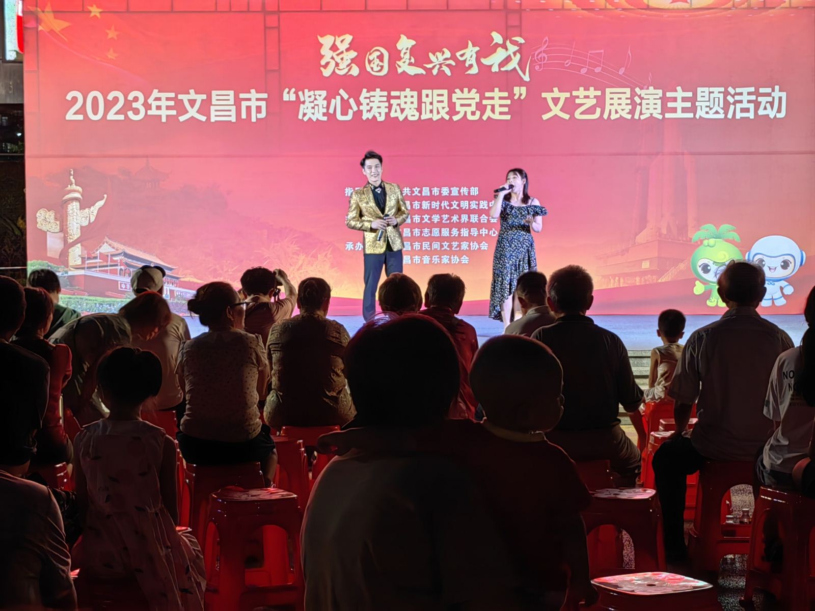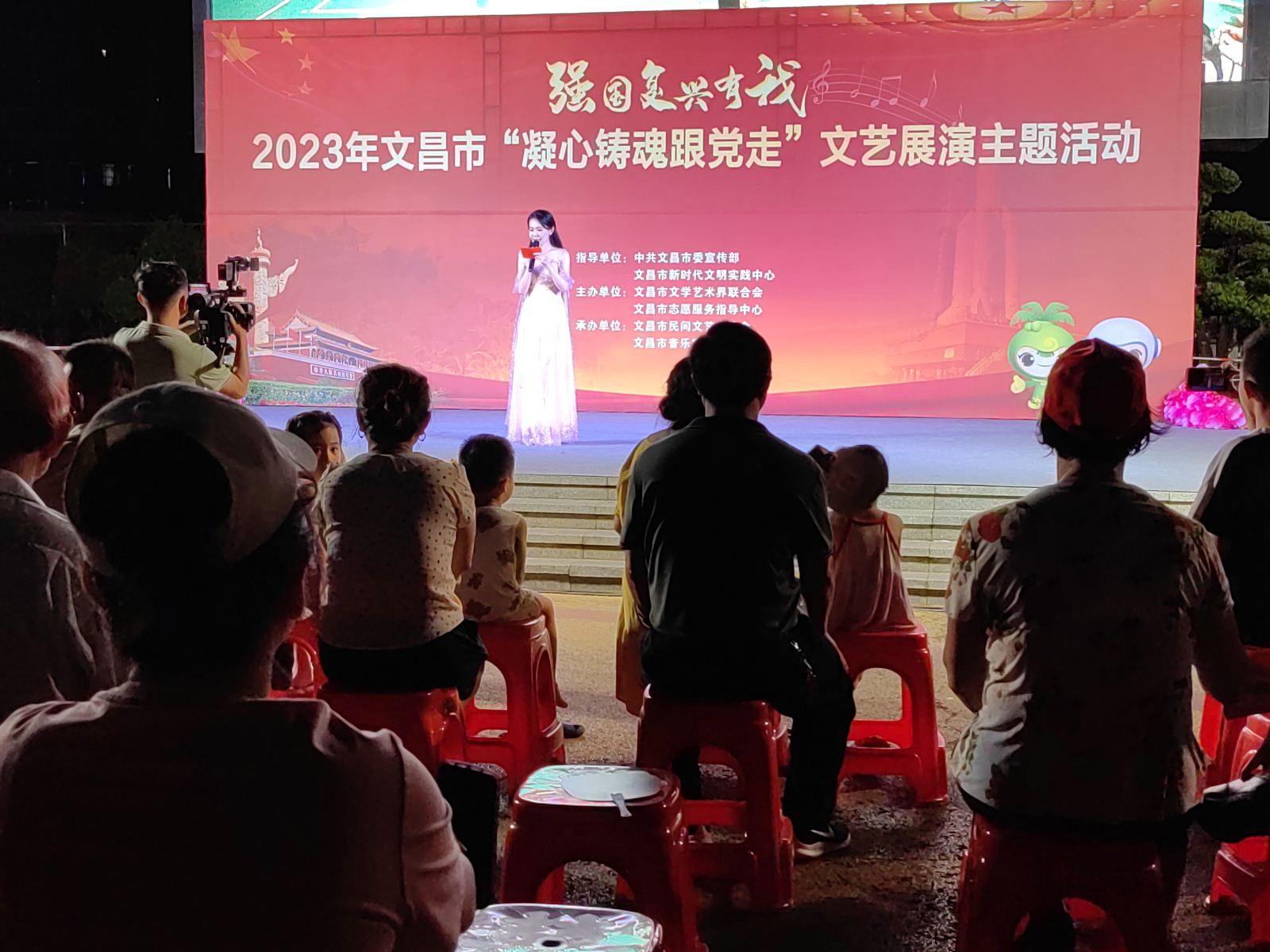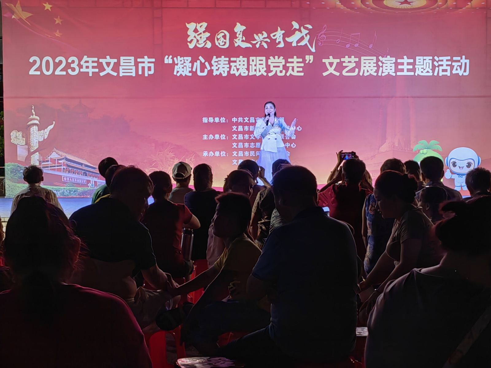 为进一步深入贯彻落实市委市政府关于积极推进文昌创建全国文明城市工作部署要求,展现新时代“军爱民、民拥军,军民鱼水一家亲”的良好社会风尚,丰富驻文昌部队官兵精神文化生活,发挥红色文艺培根铸魂独特作用,在市委宣传部指导下,市文联于2023年7月28日晚20:00在文昌市文城镇市民健身活动中心举办2023年文昌市“凝心铸魂跟党走”文艺展演主题活动。