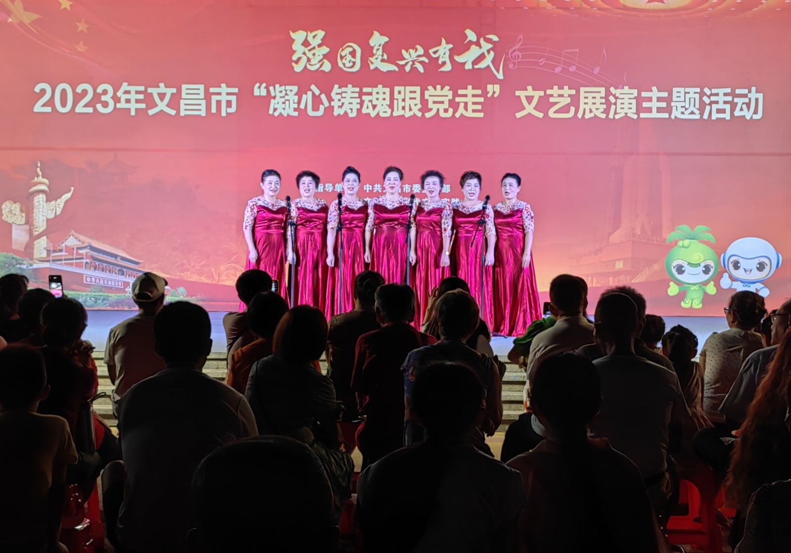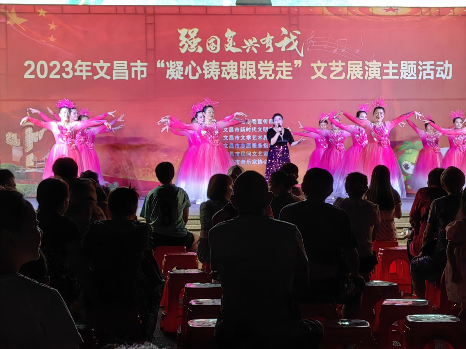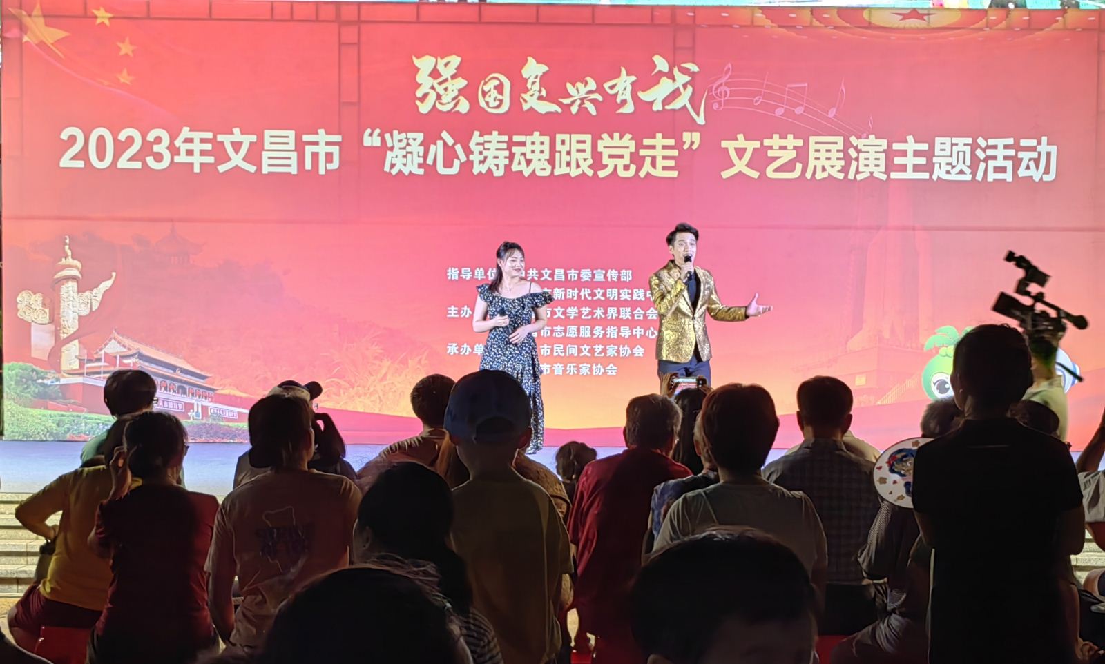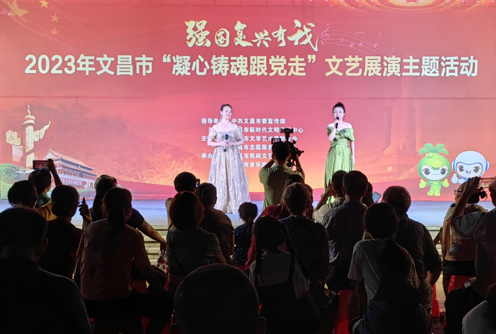 为进一步深入贯彻落实市委市政府关于积极推进文昌创建全国文明城市工作部署要求,展现新时代“军爱民、民拥军,军民鱼水一家亲”的良好社会风尚,丰富驻文昌部队官兵精神文化生活,发挥红色文艺培根铸魂独特作用,在市委宣传部指导下,市文联于2023年7月28日晚20:00在文昌市文城镇市民健身活动中心举办2023年文昌市“凝心铸魂跟党走”文艺展演主题活动。