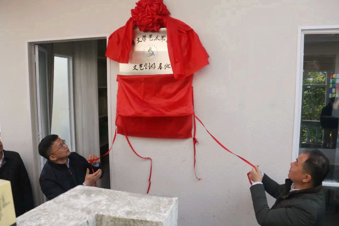 琼海市委常委、宣传部长刘宁与琼海市文联主席杨奋共同为“文艺创作基地”揭牌