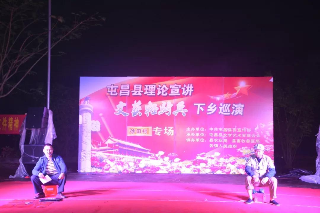 为推动文艺扎根基层,服务百姓,助力我县脱贫攻坚工作和乡村振兴工程,用文艺的形式引导和教育广大人民群众脱贫致富,1月16日晚,由县委宣传部主办,县文联承办的近百场屯昌县“理论宣讲”文艺轻骑队下乡巡演活动在新兴沙田村拉开序幕。