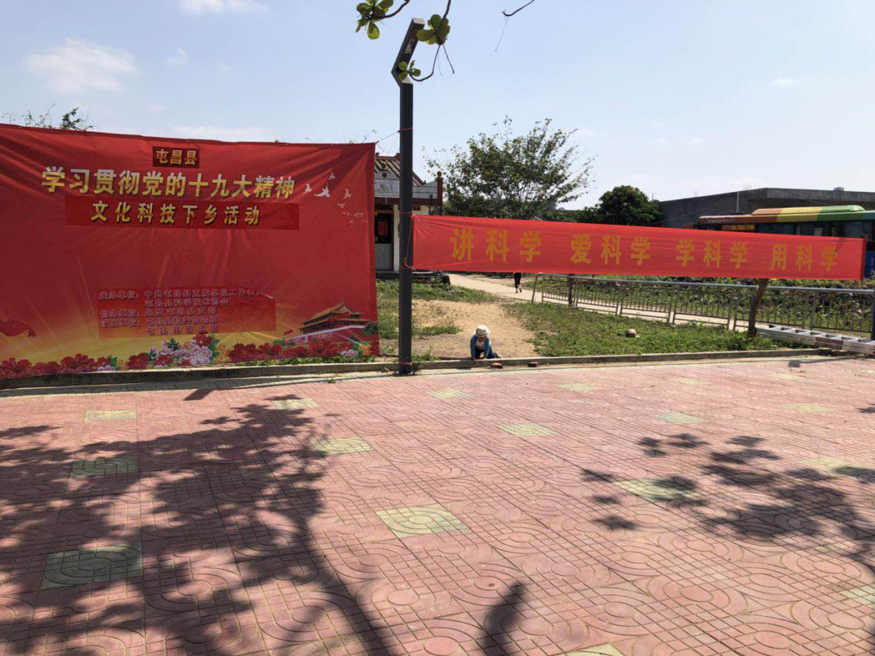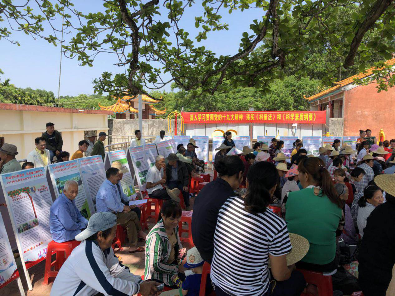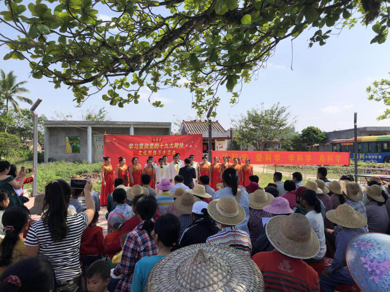 3月21日,由县直工委、县科协主办,民盟屯昌县支部协办,县机关合唱团、管乐团组成的学习贯彻党的十九大精神文化科技下乡队到新兴镇南歧村,以图文展示和文艺演出的形式进行巡回宣讲。
