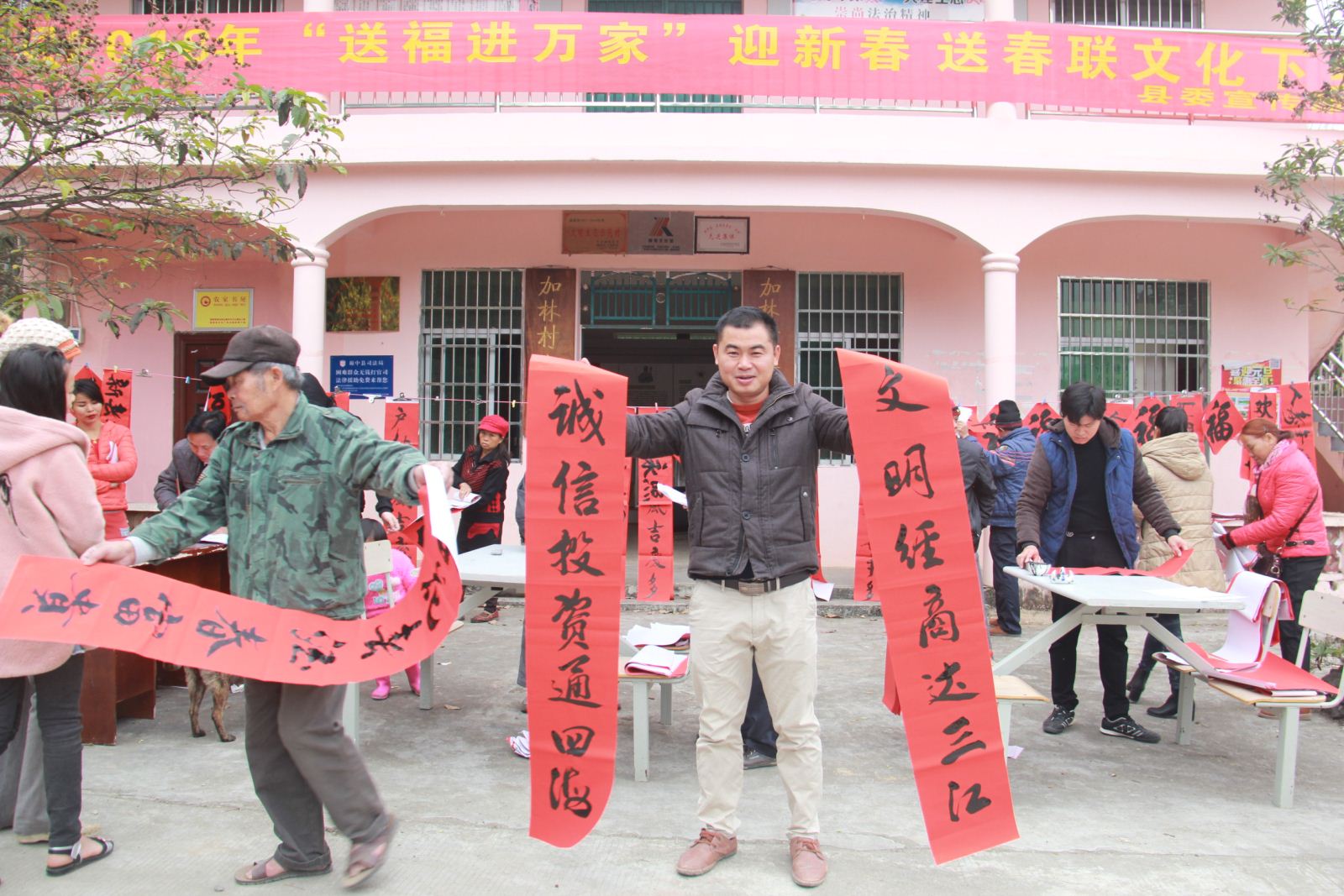 2月7日,琼中县文联组织了数名艺术家深入黎母山镇加林村开展“送福进万家”春联下乡活动。