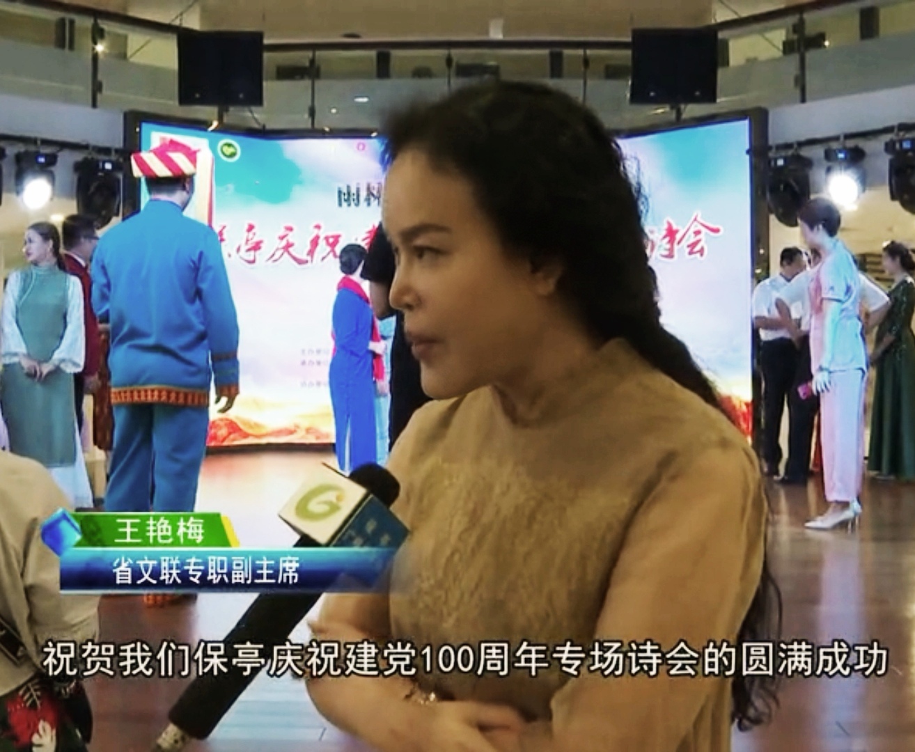 专场诗会结束后,省文联专职副主席王艳梅接受了保亭融媒体中心、保亭电视台的专访。