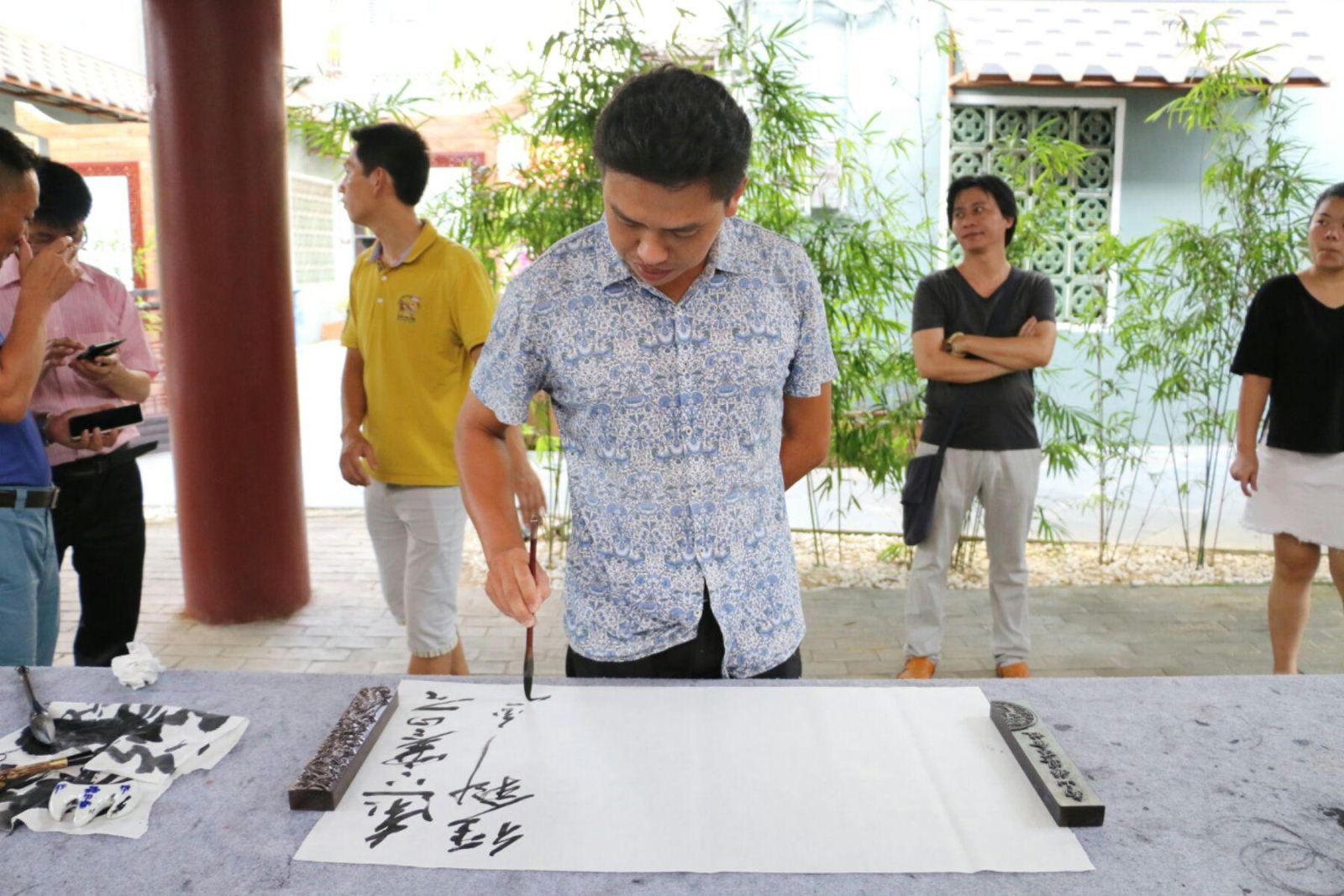 琼海市书协石主席当场挥毫、潇潇洒洒。