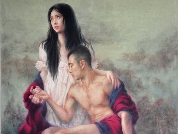 当代人的感情世界观掺杂了太多附加条件,早已失去原有的味道,脆弱的不堪一击。此画的出现足以让那些徘徊不定,心绪失衡的人们看到爱的力量,情的真挚,坚定与责任更章显弥足珍贵的本质。此画风格多以没骨为主,色彩偏倚复古风,并借鉴了文艺复兴时期的格调,使工笔画更具深沉.凝重,典雅的风范。