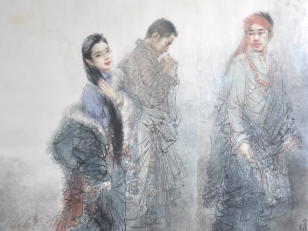 向往静谧、纯善、宽仁的理想化境,探寻人性最为本真的内心世界,如虔诚的信徒对宗教的向往,引领我对神祗无尚的敬畏与膜拜,在创作中追溯本源,感悟皈依——《渡影》是我这一思想的最好解读。作品空灵、洁净,不染纤尘,更以接近神谕的行止来赋予藏地人物的情感世界。作者以深沉,凝重、浑然的色调渲染出如离凡境,若游太虚般的至美境界。