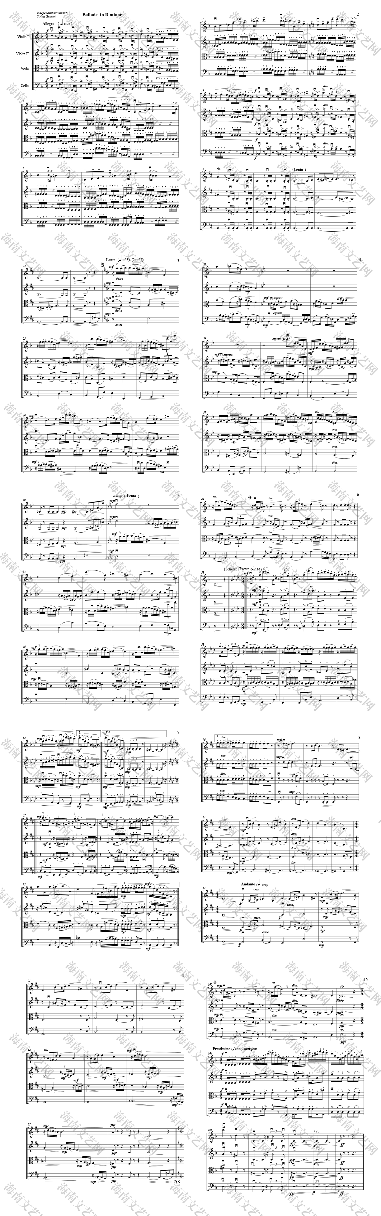 器乐类,室内乐作品,创作于2012年10月。 作品为单乐章结构,复三部曲式,叙事曲风格,由引子—主部—副部—连接部—再现部—Coda 构成。 作品以古典和声材料为主体,但音乐语言在继承“古典式”表达的同时,更观照“今天”人们的情感及听赏诉求。而且,作品在创作上也更注重技术的严禁和应有的艺术品位。