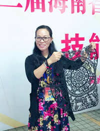 《海南风情图》此作题材和创意以表现海南黎族同胞的风土人情为主题思想。画面构思巧妙,采用了丰富多彩的故事情节为主题内容,如:黎族的传统节日竹竿舞、采槟榔、鼻萧、以及织黎锦中的纺、染、织、绣等;背景以海南著名的五指山和七仙岭、黎村苗寨、大海沙滩等。