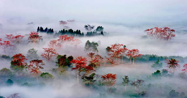 《雾绕红棉花更艳》(艺术类 作者:邱瑞天) 首届南海文艺奖摄影类获奖作品