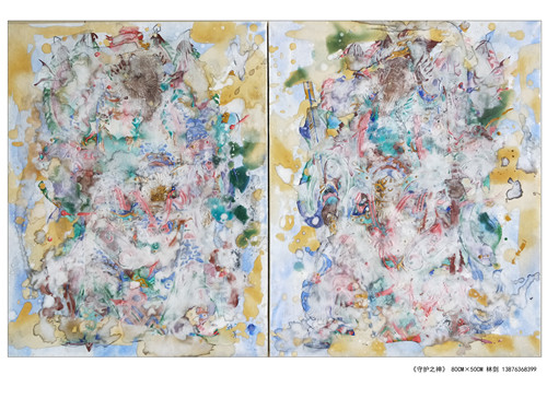 H0154岩彩《守护之神》 林剑