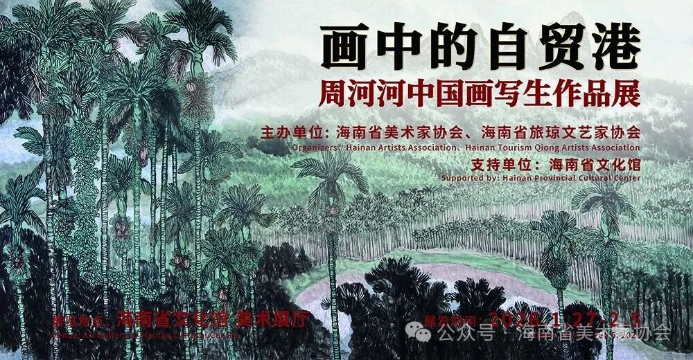1月27日,由海南省美术家协会、海南省旅琼文艺家协会主办,海南省河萍昶文化艺术有限公司承办,海南省文化馆(海南省非遗中心)支持的画中的自贸港——周河河中国画写生作品展将在海南省文化馆(海南省非遗中心)开幕,展览免费展至2月5日。