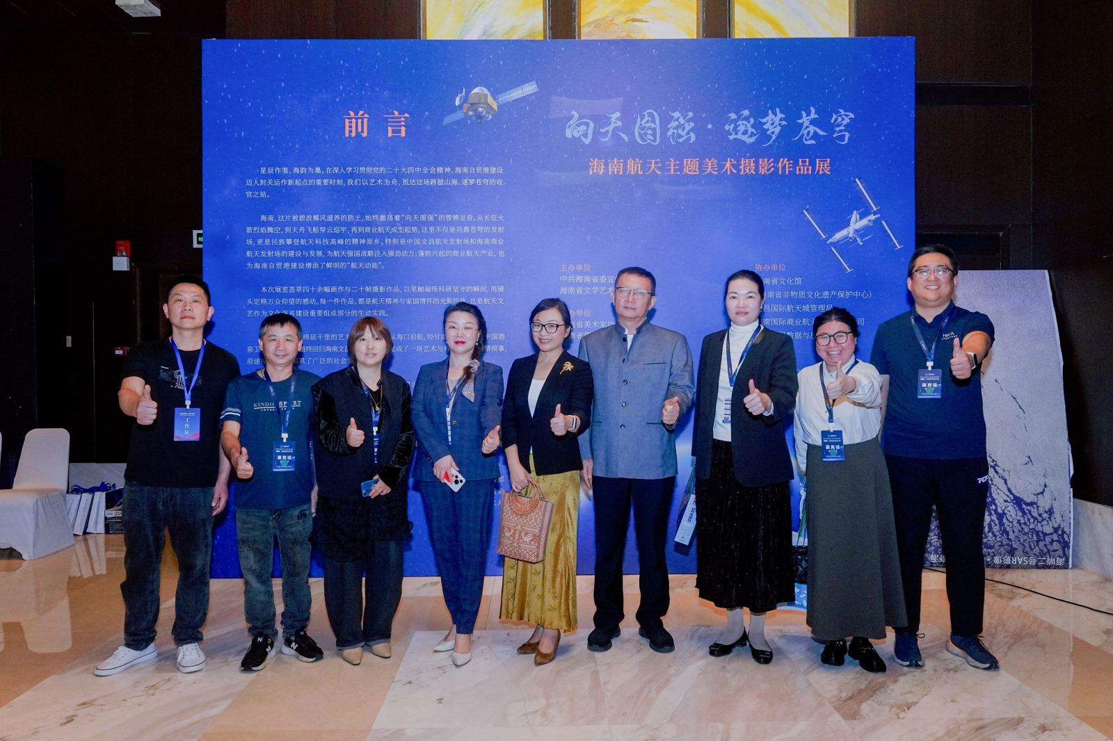 本次展览由省委宣传部、省文联共同主办,作为文昌航天文旅高质量发展论坛的重要组成部分,吸引了各界目光。省委宣传部副部长陆海鹰、省文联一级巡视员马飞、文昌国际航天城管理局副局长袁世英、海南国际商业航天发射有限公司党委副书记郭强、海南星际荣耀航天发射技术有限责任公司董事何光辉等出席论坛活动,并共同为展览揭幕。
