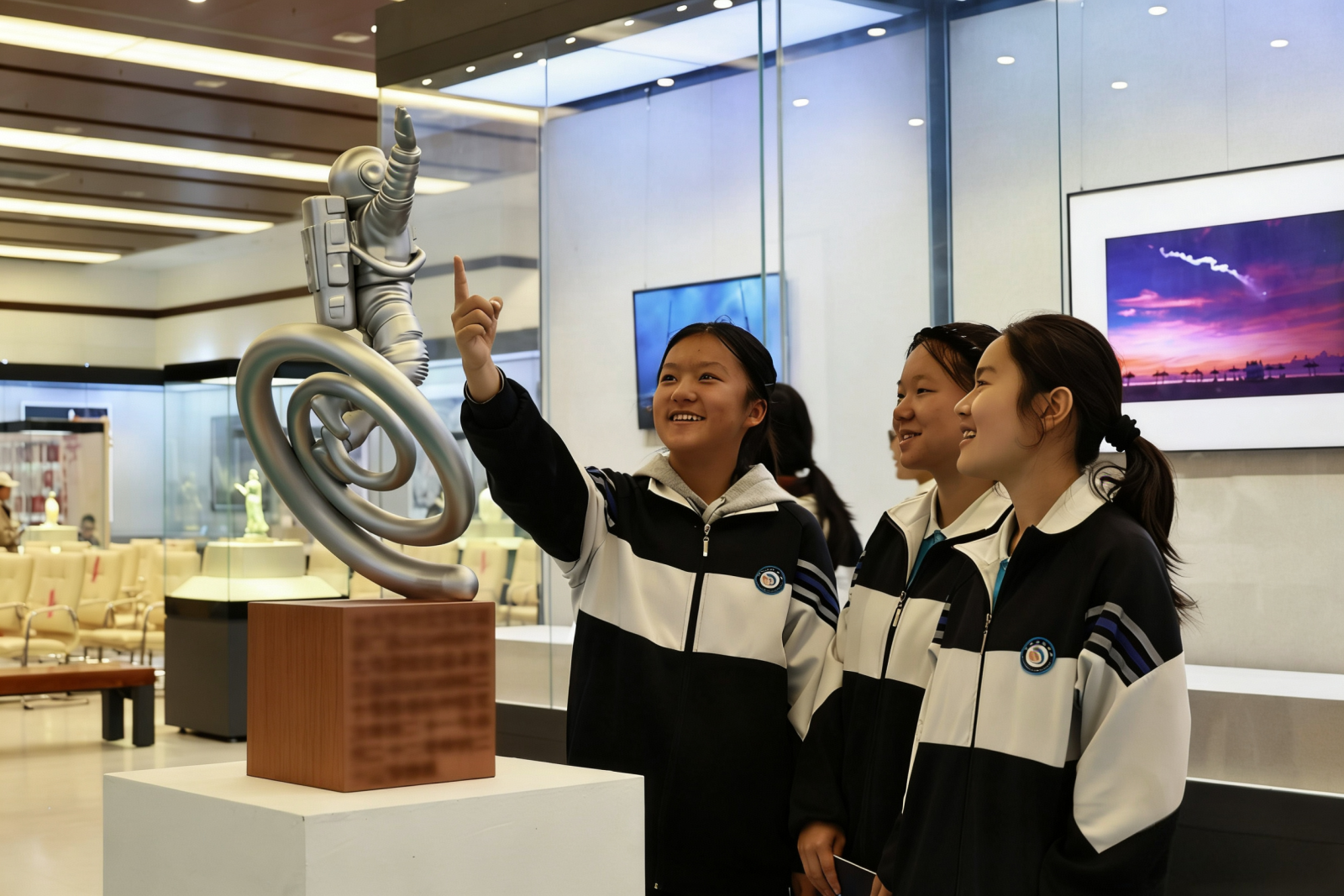 观众参观“向天图强·逐梦苍穹”海南航天主题美术摄影作品展