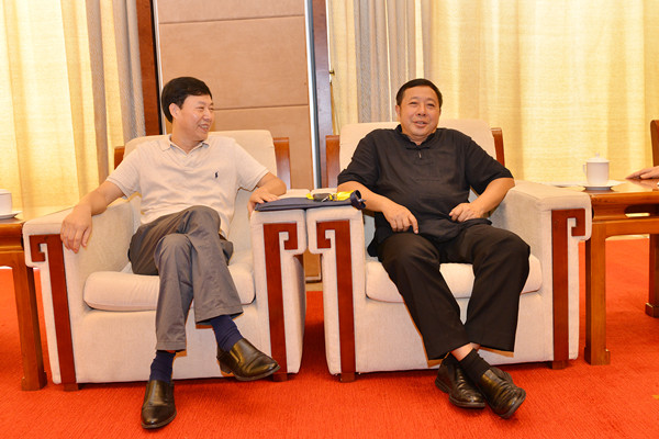 海南省文联专职副主席扈大荣与中国书法家协会副主席、海南省书协主席吴东民亲切交谈