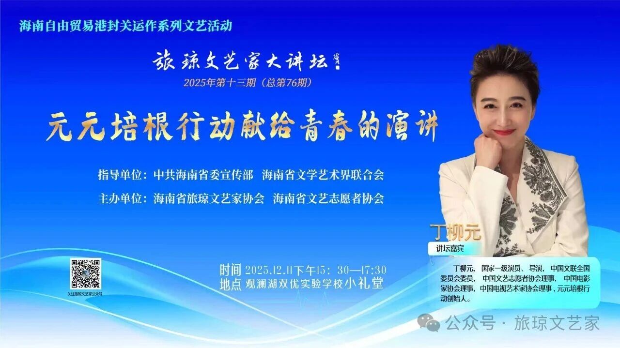 旅琼文艺家大讲坛2025年第十三期(总第76期)丨丁柳元:献给青春的演讲