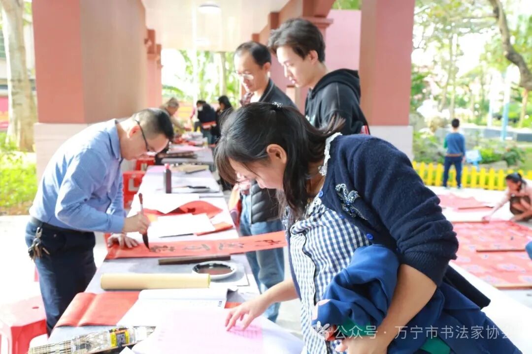 1月21日上午9时,万宁市文联、万宁市书法家协会联合在万宁中学举办“万福迎春”送春联公益活动,以笔墨为媒,向全校师生致以最真挚的新春祝福。省书协副主席、万宁市文联主席陈鸿诚,万宁市文联副主席、市书协主席梁安邦等22位知名书法家及书协会员参加活动。
