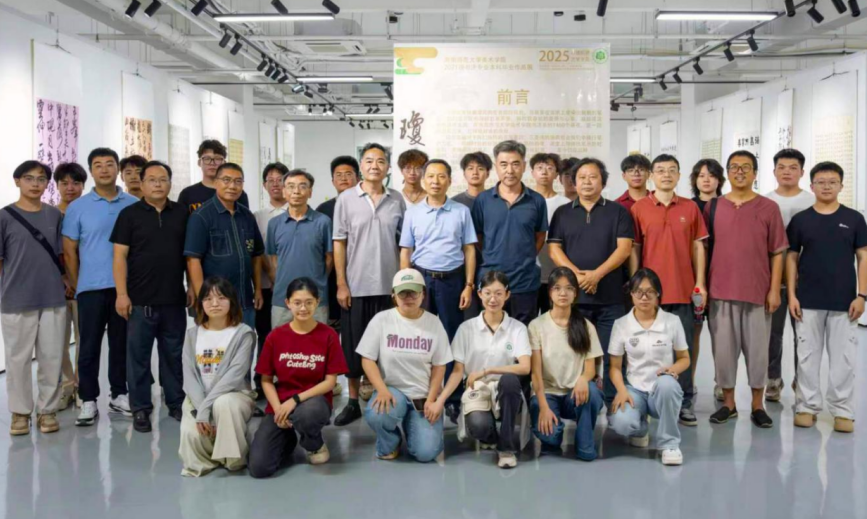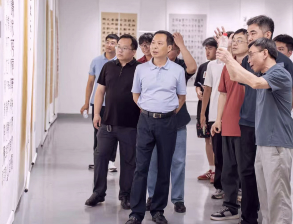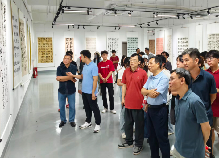 6月27日,中国书法家协会理事、海南省文联副主席、省书法家协会主席陈洪率队,带领海南省书法家协会副主席兼秘书长杨文修,副主席范中、副秘书长吴青山一行赴海南师范大学桂林洋校区,观摩美术学院书法专业2025届本科毕业生作品展。海南师范大学美术学院副院长韩潮、书法系主任郭名峰,导师黄承利、颜以琳、朱战威、王雨、侯平,以及毕业生们参与了此次展览观摩活动。